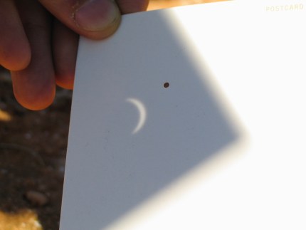 太陽はとても明るいので、「わ。欠けてる!」と肉眼でわかるようになるのは、もうほとんど欠けた頃。それまでは観望用のフィルターが必要。